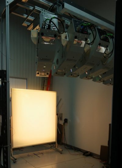 這個(gè)新系統(tǒng)結(jié)合了五臺(tái)投影儀系統(tǒng),可以根據(jù)**終用戶的功率要求將其升級(jí)到6臺(tái)。每個(gè)投影儀系統(tǒng)均包含2 kW QTH燈,并帶有**濾光片,以創(chuàng)建必要的光譜輸出。