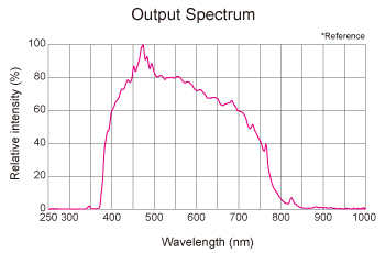 MAX-400D氙燈光譜范圍只有400-700nm,在這段可見光范圍內(nèi)具有很高的功率和平坦的能量分布。